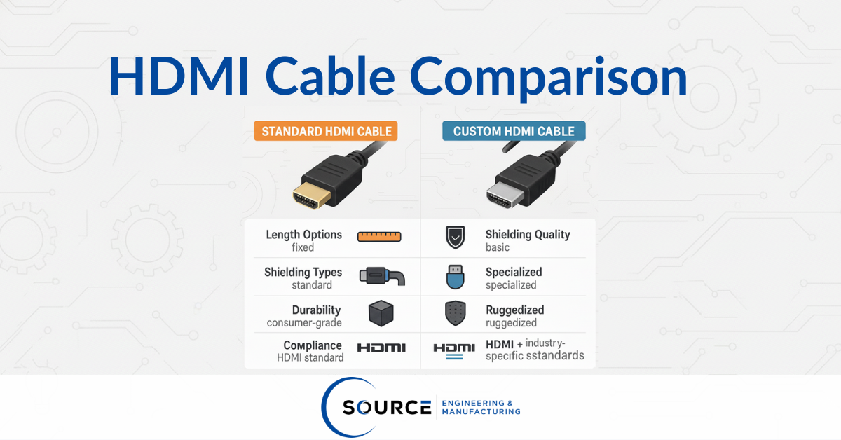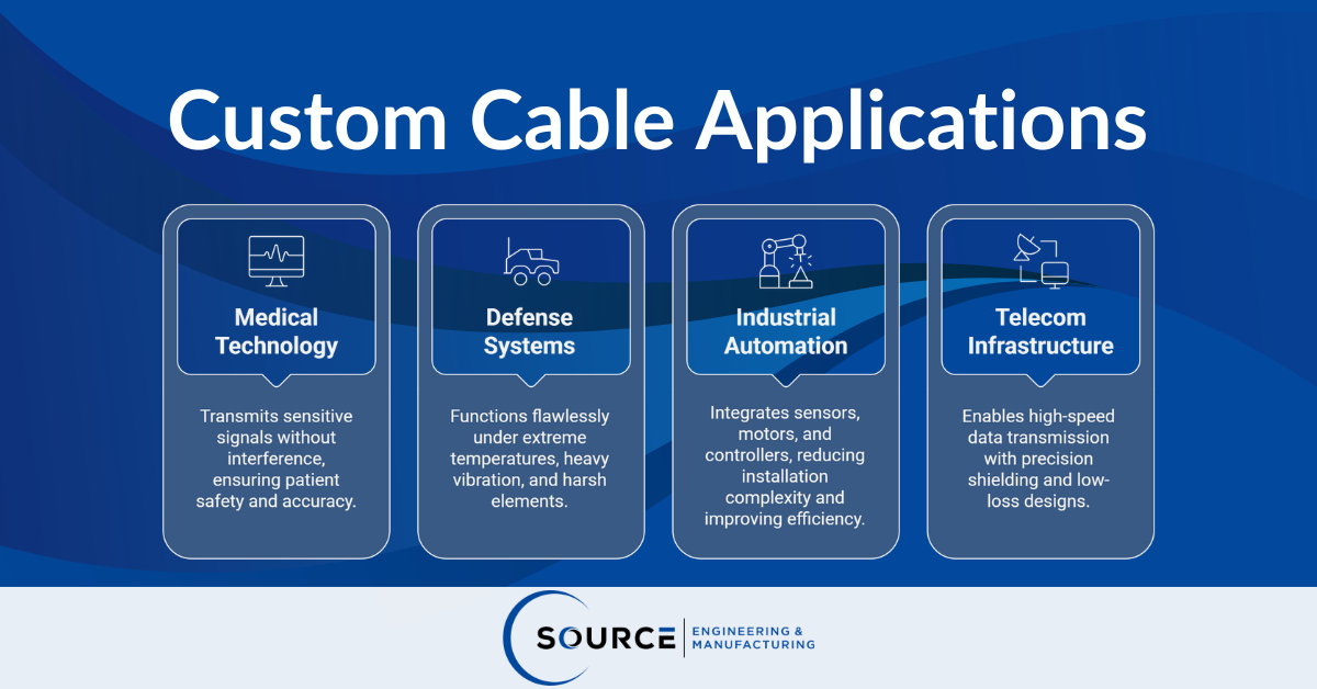 Need precise, application-specific cabling solutions? Source Engineering & Manufacturing specializes in custom cable manufacturing for medical, defense, industrial, and commercial applications. Trying to manage cable assembly in-house exposes you to risks—missed compliance, failed quality checks, and costly delays that can impact your entire operation.