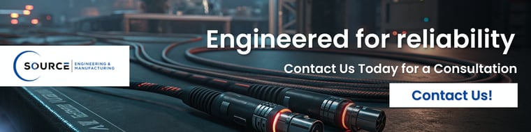Need a cable assembly that does more than carry current? Source Engineering & Manufacturing designs high-performance custom cables for power, signal, and hybrid applications. From concept to completion, we deliver assemblies built for your exact demands. With quality control systems, UL certifications, and ISO compliance already in place, we help you avoid the cost and complexity of building in-house capabilities. Partner with the experts who do this every day. Visit www.sourceeng.com to request your custom quote today.